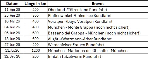 Teilnehmerbregenzung: 90 Teilnehmer pro Brevet